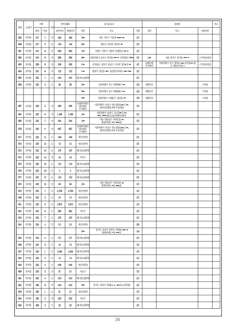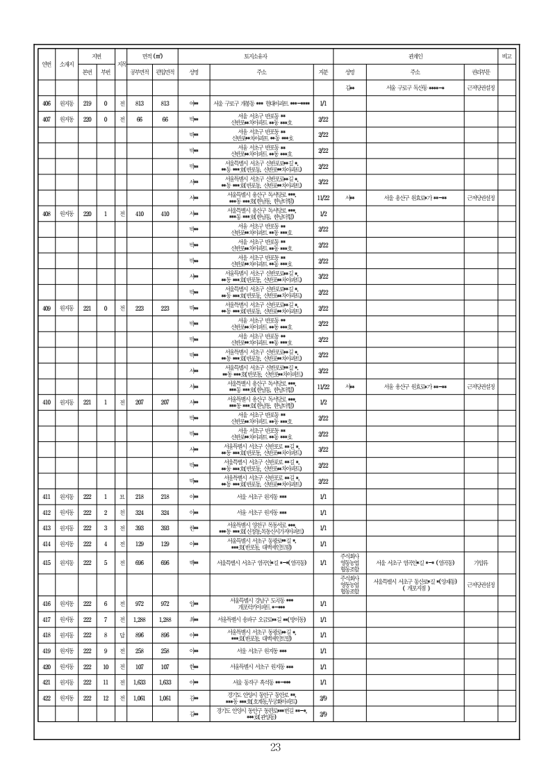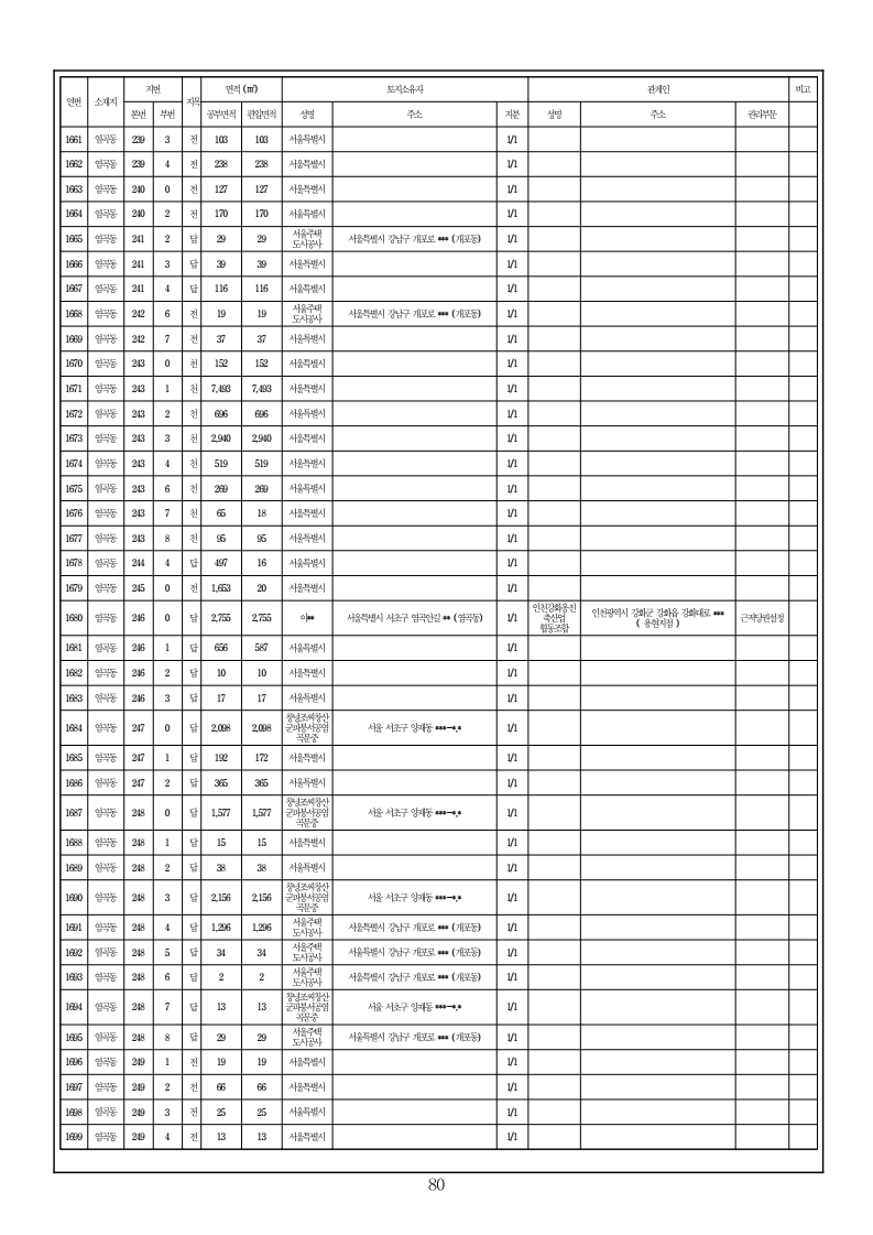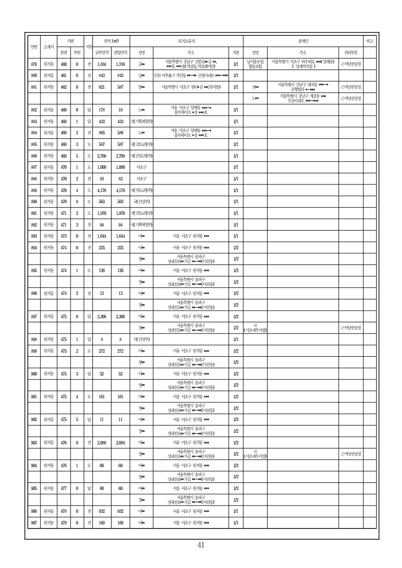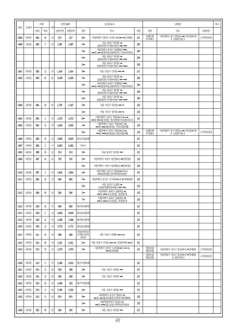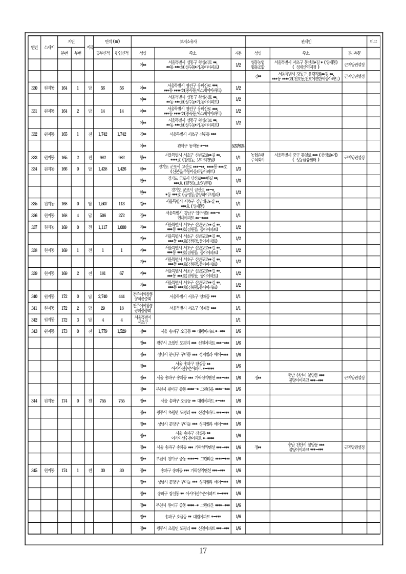 1 ◉ 국토교통부 고시 제2026-54호 「공공주택 특별법」제6조에 따라 서울서리풀1 공공주택지구를 지정하고, 같은 법제12조및「토지이용규제 기본법」제8조에 따라 지형도면 등을 다음과 같이 고시합니다. 2026년2월2일국토교통부장관서울서리풀1 공공주택지구의 지정 및 지형도면 등 1. 주택지구의 명칭, 위치 및 면적 가. 명 칭 : 서울서리풀1 공공주택지구 나. 위 치 : 서울특별시 서초구 원지동, 신원동, 염곡동, 내곡동 일원 다. 면 적 : 2,018,074㎡ 2. 주택지구의 지정일 : 관보게재일 3. 사업의 종류 : 「공공주택 특별법」제2조에 따른 공공주택사업 4. 공공주택사업자의 명칭, 소재지 및 대표자 성명 명칭 소재지 대표자 성명한국토지주택공사 경상남도 진주시 충의로 19(충무공동) 조경숙(직무대행) 서울주택도시개발공사 서울특별시 강남구 개포로 621(개포동) 황상하 5. 수용하거나 사용할 토지 등의 소재지, 지번, 지목, 면적, 소유권 및 소유권외의권리의 명세와 그 소유자 및 권리자의 성명(법인의 경우에는 명칭), 주소 : [붙임1] 6.「토지이용규제 기본법」제8조 및 같은 법 시행령 제7조에 따른 지형도면등열람: 토지이음(http://www.eum.go.kr)에서 열람할 수 있음 7. 관계 서류의 열람방법 : 서울특별시 서초구 도시계획과(02-2155-6791), 한국토지주택공사 서울지역본부(02-3416-3751)에 비치하여 토지소유자 및 이해관계인등일반인에게 보이게 함 [붙임1] : 수용하거나 사용할 토지 등의 소재지, 지번, 지목, 면적, 소유권 및 소유권외의권리의 명세와 그 소유자 및 권리자의 성명, 주소 2 연번 소재지 지번 지목 면적 (㎡) 토지소유자 관계인 비고본번 부번 공부면적 편입면적 성명 주소 지분 성명 주소 권리부문 합계 4,034,913 2,018,074 1 원지동 1 0 도 286 286 서울특별시 1/1 2 원지동 1 1 답 2,438 2,438 조** 충북 청주시 서원구 개신동 *** 개신주공*단지아파트 ***-*** 1/6 조** 서울특별시 서초구 염곡안길 *(염곡동) 1/6 조** 서울특별시 동작구 상도동 ***-** 1/6 조** 경기도 파주시 번뛰기길 **-*, **동 ***호(야당동,예일아트빌) 1/6 조** 경기도 양평군 양평읍 십리길 ** 1/6 조** 서울특별시 서대문구 현저동 *** 독립문극동아파트 ***-*** 1/6 3 원지동 2 0 답 1,025 1,025 조** 충북 청주시 서원구 개신동 *** 개신주공*단지아파트 ***-*** 1/6 조** 서울특별시 서초구 염곡안길 *(염곡동) 1/6 조** 경기도 양평군 옥천면 옥천문화마을*길 ** 1/6 조** 경기도 파주시 번뛰기길 **-*, **동 ***호(야당동,예일아트빌) 1/6 조** 경기도 양평군 양평읍 십리길 ** 1/6 조** 서울특별시 서대문구 현저동 *** 독립문극동아파트 ***-*** 1/6 4 원지동 3 0 전 1,002 1,002 엄** 서울특별시 강남구 삼성로***길 **(청담동) 1/1 주식회사 우리은행 서울특별시 중구 소공로 **(회현동*가) ( 동의정부지점 ) 근저당권설정 주식회사 우리은행 서울특별시 중구 소공로 **(회현동*가) 지상권설정 5 원지동 4 0 답 8,215 8,215 중앙화훼 산업조합 서울 서초구 원지동 * 1/1 6 원지동 4 1 답 51 51 서울특별시 1/1 7 원지동 4 2 답 174 174 서울특별시 1/1 8 원지동 5 0 답 7 7 서울특별시 1/1 9 원지동 5 1 답 262 262 서울특별시 1/1 10 원지동 5 2 답 648 648 서울특별시 1/1 11 원지동 5 3 답 1,335 1,335 서울특별시 1/1 12 원지동 5 4 답 412 412 서울특별시 1/1 13 원지동 6 0 답 926 926 서울특별시 1/1 14 원지동 7 1 답 2 2 서울특별시 1/1 15 원지동 7 2 답 53 53 서울특별시 1/1 16 원지동 7 3 전 515 515 임** 전라북도 고창군 고창읍 읍내리 ***-* 1/1 농업협동조합 중앙회 서울특별시중구충무로*가** ( 고창군지부) 근저당권설정 17 원지동 7 4 답 1,056 1,056 서울특별시 1/1 국(건설교통부) 지상권설정 18 원지동 7 5 답 225 225 서울특별시 1/1 19 원지동 7 8 전 2,602 2,602 서울특별시 1/1 국(국토해양부) 지상권설정 20 원지동 7 9 답 1,762 1,762 서울특별시 1/1 21 원지동 7 10 답 2,372 2,372 서울특별시 1/1 22 원지동 7 12 도 112 112 국(건설부) 1/1 23 원지동 8 1 답 205 205 박** 서울특별시 용산구 서빙고동 ***-** 신동아아파트 **-*** 4/12 이** 서울 강남구 대치동 *** 개포*차우성아파트 **동 ****호 3/12 이** 서울특별시 강남구 대치동 *** 개포*차우성아파트 **-**** 3/12 허** 서울특별시 용산구 서빙고동 ***-** 신동아아파트 **-*** 2/12 24 원지동 8 2 답 931 931 박** 서울특별시성동구옥수동*** 극동아파트*-*** 1/1 국(건설교통부) 지상권설정 25 원지동 9 1 답 3,851 3,851 박** 서울특별시 용산구 이촌동 ***-* 렉스아파트 **-*** 8/24 국(용산세무서) 근저당권설정 국(국토해양부) 지상권설정 3 연번 소재지 지번 지목 면적 (㎡) 토지소유자 관계인 비고본번 부번 공부면적 편입면적 성명 주소 지분 성명 주소 권리부문 이** 서울 강남구 대치동 *** 개포*차우성아파트 **동 ****호 6/24 국(국토해양부) 지상권설정 이** 서울특별시 강남구 대치동 *** 개포*차우성아파트 **-**** 3/24 국(국토해양부) 지상권설정 허** 서울특별시 강남구 대치동 *** 개포*차우성아파트 **-**** 3/24 국(국토해양부) 지상권설정 허** 서울특별시 용산구 서빙고동 ***-** 신동아아파트 **-*** 4/24 국(국토해양부) 지상권설정 26 원지동 9 2 전 334 334 박** 서울특별시 용산구 서빙고동 ***-** 신동아아파트 **-*** 4/12 이** 서울 강남구 대치동 *** 개포*차우성아파트 **동 ****호 3/12 이** 서울특별시 