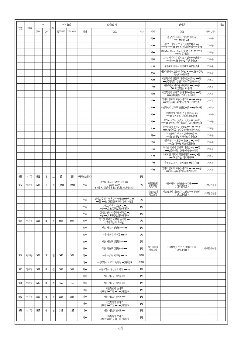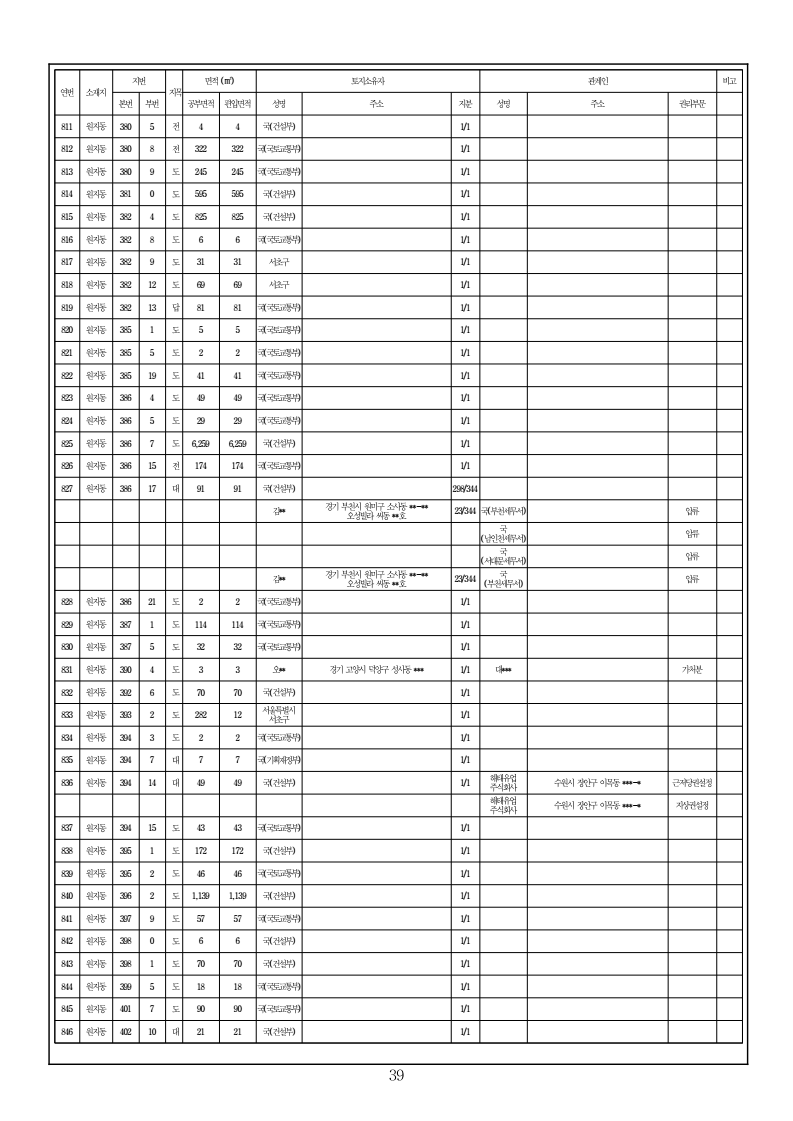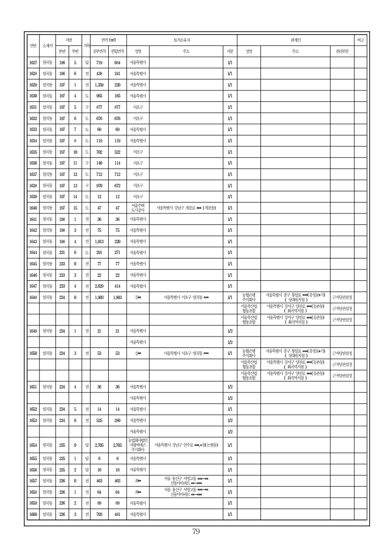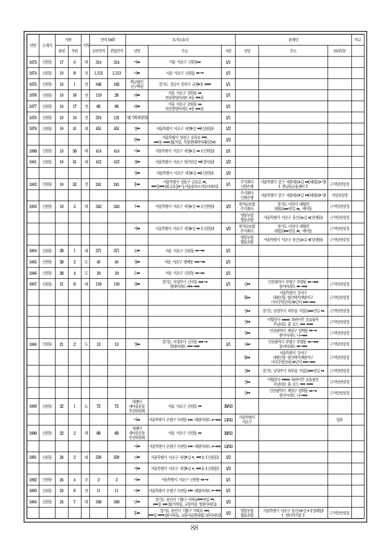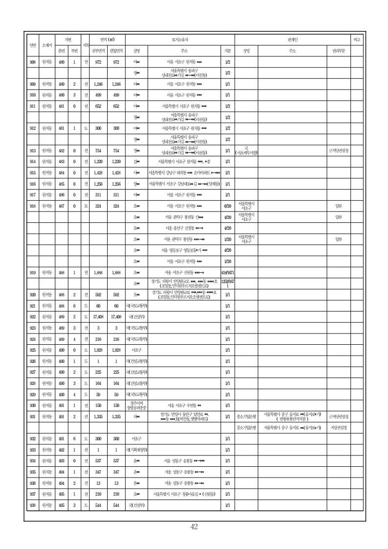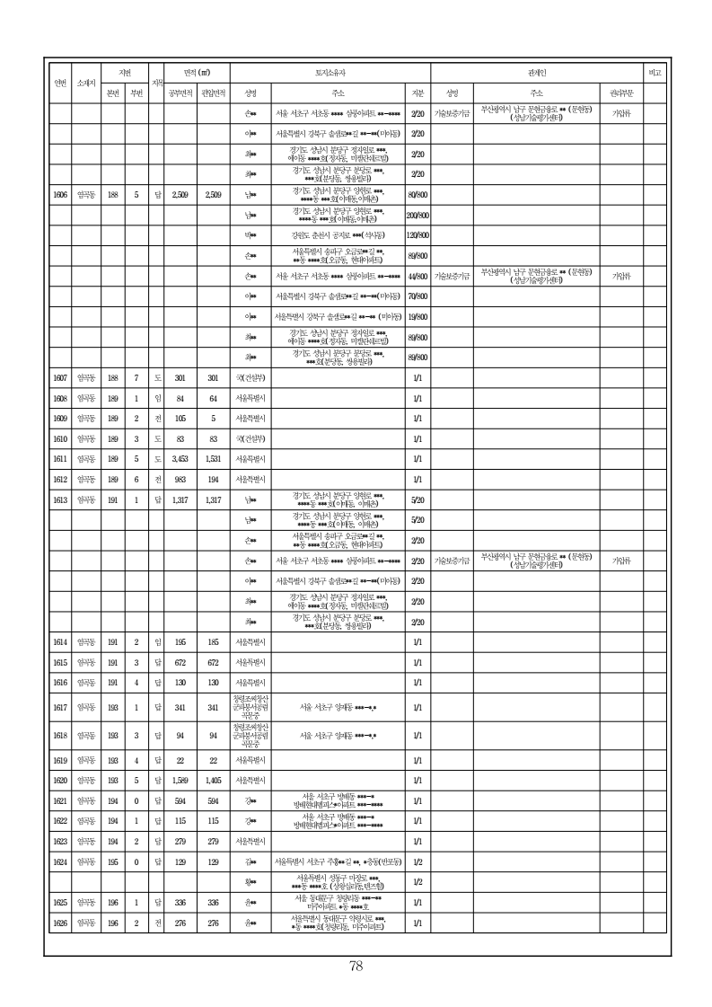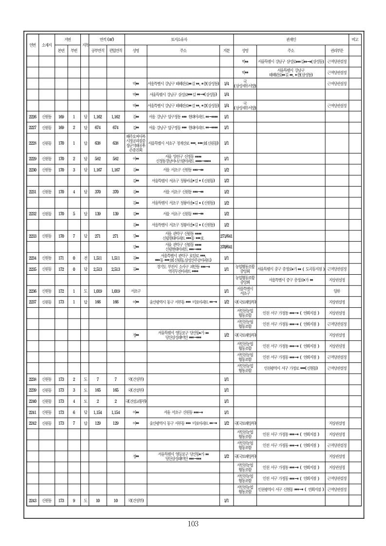 1 ◉ 국토교통부 고시 제2026-54호 「공공주택 특별법」제6조에 따라 서울서리풀1 공공주택지구를 지정하고, 같은 법제12조및「토지이용규제 기본법」제8조에 따라 지형도면 등을 다음과 같이 고시합니다. 2026년2월2일국토교통부장관서울서리풀1 공공주택지구의 지정 및 지형도면 등 1. 주택지구의 명칭, 위치 및 면적 가. 명 칭 : 서울서리풀1 공공주택지구 나. 위 치 : 서울특별시 서초구 원지동, 신원동, 염곡동, 내곡동 일원 다. 면 적 : 2,018,074㎡ 2. 주택지구의 지정일 : 관보게재일 3. 사업의 종류 : 「공공주택 특별법」제2조에 따른 공공주택사업 4. 공공주택사업자의 명칭, 소재지 및 대표자 성명 명칭 소재지 대표자 성명한국토지주택공사 경상남도 진주시 충의로 19(충무공동) 조경숙(직무대행) 서울주택도시개발공사 서울특별시 강남구 개포로 621(개포동) 황상하 5. 수용하거나 사용할 토지 등의 소재지, 지번, 지목, 면적, 소유권 및 소유권외의권리의 명세와 그 소유자 및 권리자의 성명(법인의 경우에는 명칭), 주소 : [붙임1] 6.「토지이용규제 기본법」제8조 및 같은 법 시행령 제7조에 따른 지형도면등열람: 토지이음(http://www.eum.go.kr)에서 열람할 수 있음 7. 관계 서류의 열람방법 : 서울특별시 서초구 도시계획과(02-2155-6791), 한국토지주택공사 서울지역본부(02-3416-3751)에 비치하여 토지소유자 및 이해관계인등일반인에게 보이게 함 [붙임1] : 수용하거나 사용할 토지 등의 소재지, 지번, 지목, 면적, 소유권 및 소유권외의권리의 명세와 그 소유자 및 권리자의 성명, 주소 2 연번 소재지 지번 지목 면적 (㎡) 토지소유자 관계인 비고본번 부번 공부면적 편입면적 성명 주소 지분 성명 주소 권리부문 합계 4,034,913 2,018,074 1 원지동 1 0 도 286 286 서울특별시 1/1 2 원지동 1 1 답 2,438 2,438 조** 충북 청주시 서원구 개신동 *** 개신주공*단지아파트 ***-*** 1/6 조** 서울특별시 서초구 염곡안길 *(염곡동) 1/6 조** 서울특별시 동작구 상도동 ***-** 1/6 조** 경기도 파주시 번뛰기길 **-*, **동 ***호(야당동,예일아트빌) 1/6 조** 경기도 양평군 양평읍 십리길 ** 1/6 조** 서울특별시 서대문구 현저동 *** 독립문극동아파트 ***-*** 1/6 3 원지동 2 0 답 1,025 1,025 조** 충북 청주시 서원구 개신동 *** 개신주공*단지아파트 ***-*** 1/6 조** 서울특별시 서초구 염곡안길 *(염곡동) 1/6 조** 경기도 양평군 옥천면 옥천문화마을*길 ** 1/6 조** 경기도 파주시 번뛰기길 **-*, **동 ***호(야당동,예일아트빌) 1/6 조** 경기도 양평군 양평읍 십리길 ** 1/6 조** 서울특별시 서대문구 현저동 *** 독립문극동아파트 ***-*** 1/6 4 원지동 3 0 전 1,002 1,002 엄** 서울특별시 강남구 삼성로***길 **(청담동) 1/1 주식회사 우리은행 서울특별시 중구 소공로 **(회현동*가) ( 동의정부지점 ) 근저당권설정 주식회사 우리은행 서울특별시 중구 소공로 **(회현동*가) 지상권설정 5 원지동 4 0 답 8,215 8,215 중앙화훼 산업조합 서울 서초구 원지동 * 1/1 6 원지동 4 1 답 51 51 서울특별시 1/1 7 원지동 4 2 답 174 174 서울특별시 1/1 8 원지동 5 0 답 7 7 서울특별시 1/1 9 원지동 5 1 답 262 262 서울특별시 1/1 10 원지동 5 2 답 648 648 서울특별시 1/1 11 원지동 5 3 답 1,335 1,335 서울특별시 1/1 12 원지동 5 4 답 412 412 서울특별시 1/1 13 원지동 6 0 답 926 926 서울특별시 1/1 14 원지동 7 1 답 2 2 서울특별시 1/1 15 원지동 7 2 답 53 53 서울특별시 1/1 16 원지동 7 3 전 515 515 임** 전라북도 고창군 고창읍 읍내리 ***-* 1/1 농업협동조합 중앙회 서울특별시중구충무로*가** ( 고창군지부) 근저당권설정 17 원지동 7 4 답 1,056 1,056 서울특별시 1/1 국(건설교통부) 지상권설정 18 원지동 7 5 답 225 225 서울특별시 1/1 19 원지동 7 8 전 2,602 2,602 서울특별시 1/1 국(국토해양부) 지상권설정 20 원지동 7 9 답 1,762 1,762 서울특별시 1/1 21 원지동 7 10 답 2,372 2,372 서울특별시 1/1 22 원지동 7 12 도 112 112 국(건설부) 1/1 23 원지동 8 1 답 205 205 박** 서울특별시 용산구 서빙고동 ***-** 신동아아파트 **-*** 4/12 이** 서울 강남구 대치동 *** 개포*차우성아파트 **동 ****호 3/12 이** 서울특별시 강남구 대치동 *** 개포*차우성아파트 **-**** 3/12 허** 서울특별시 용산구 서빙고동 ***-** 신동아아파트 **-*** 2/12 24 원지동 8 2 답 931 931 박** 서울특별시성동구옥수동*** 극동아파트*-*** 1/1 국(건설교통부) 지상권설정 25 원지동 9 1 답 3,851 3,851 박** 서울특별시 용산구 이촌동 ***-* 렉스아파트 **-*** 8/24 국(용산세무서) 근저당권설정 국(국토해양부) 지상권설정 3 연번 소재지 지번 지목 면적 (㎡) 토지소유자 관계인 비고본번 부번 공부면적 편입면적 성명 주소 지분 성명 주소 권리부문 이** 서울 강남구 대치동 *** 개포*차우성아파트 **동 ****호 6/24 국(국토해양부) 지상권설정 이** 서울특별시 강남구 대치동 *** 개포*차우성아파트 **-**** 3/24 국(국토해양부) 지상권설정 허** 서울특별시 강남구 대치동 *** 개포*차우성아파트 **-**** 3/24 국(국토해양부) 지상권설정 허** 서울특별시 용산구 서빙고동 ***-** 신동아아파트 **-*** 4/24 국(국토해양부) 지상권설정 26 원지동 9 2 전 334 334 박** 서울특별시 용산구 서빙고동 ***-** 신동아아파트 **-*** 4/12 이** 서울 강남구 대치동 *** 개포*차우성아파트 **동 ****호 3/12 이** 서울특별시 