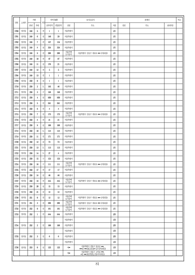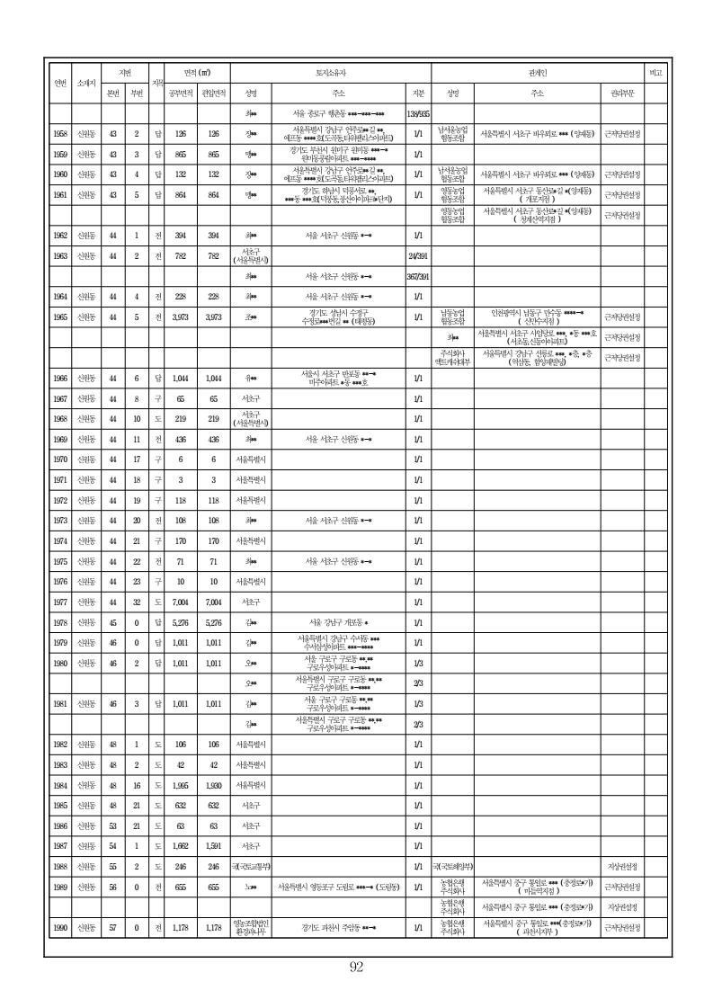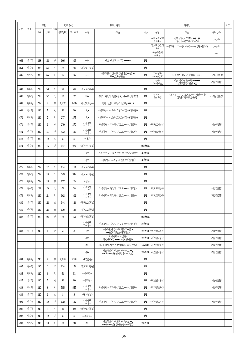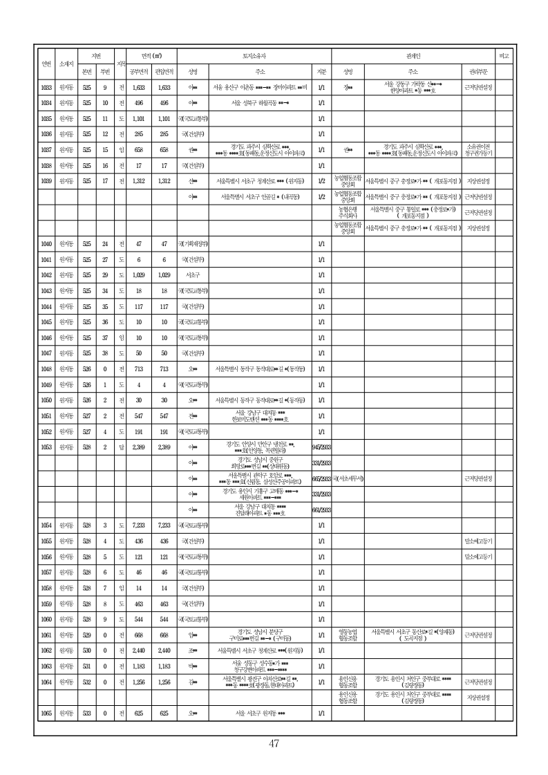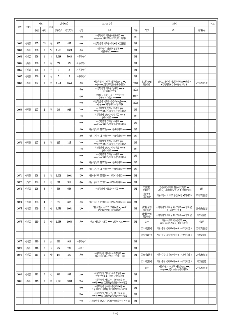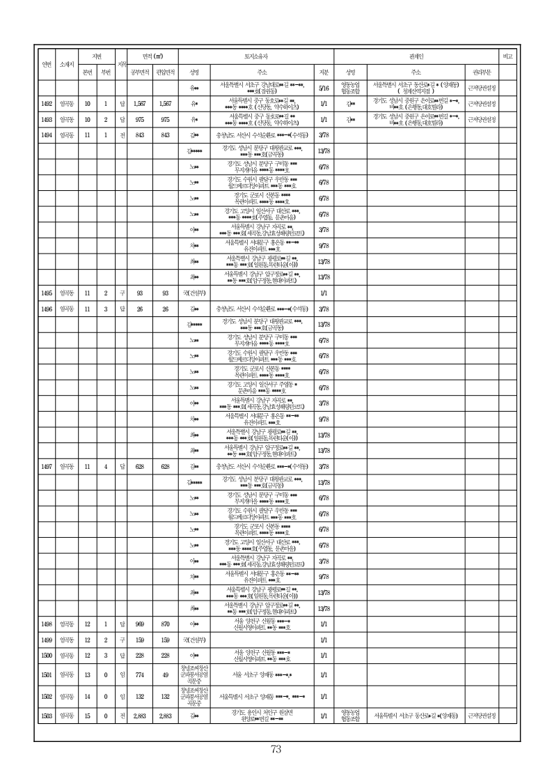 1 ◉ 국토교통부 고시 제2026-54호 「공공주택 특별법」제6조에 따라 서울서리풀1 공공주택지구를 지정하고, 같은 법제12조및「토지이용규제 기본법」제8조에 따라 지형도면 등을 다음과 같이 고시합니다. 2026년2월2일국토교통부장관서울서리풀1 공공주택지구의 지정 및 지형도면 등 1. 주택지구의 명칭, 위치 및 면적 가. 명 칭 : 서울서리풀1 공공주택지구 나. 위 치 : 서울특별시 서초구 원지동, 신원동, 염곡동, 내곡동 일원 다. 면 적 : 2,018,074㎡ 2. 주택지구의 지정일 : 관보게재일 3. 사업의 종류 : 「공공주택 특별법」제2조에 따른 공공주택사업 4. 공공주택사업자의 명칭, 소재지 및 대표자 성명 명칭 소재지 대표자 성명한국토지주택공사 경상남도 진주시 충의로 19(충무공동) 조경숙(직무대행) 서울주택도시개발공사 서울특별시 강남구 개포로 621(개포동) 황상하 5. 수용하거나 사용할 토지 등의 소재지, 지번, 지목, 면적, 소유권 및 소유권외의권리의 명세와 그 소유자 및 권리자의 성명(법인의 경우에는 명칭), 주소 : [붙임1] 6.「토지이용규제 기본법」제8조 및 같은 법 시행령 제7조에 따른 지형도면등열람: 토지이음(http://www.eum.go.kr)에서 열람할 수 있음 7. 관계 서류의 열람방법 : 서울특별시 서초구 도시계획과(02-2155-6791), 한국토지주택공사 서울지역본부(02-3416-3751)에 비치하여 토지소유자 및 이해관계인등일반인에게 보이게 함 [붙임1] : 수용하거나 사용할 토지 등의 소재지, 지번, 지목, 면적, 소유권 및 소유권외의권리의 명세와 그 소유자 및 권리자의 성명, 주소 2 연번 소재지 지번 지목 면적 (㎡) 토지소유자 관계인 비고본번 부번 공부면적 편입면적 성명 주소 지분 성명 주소 권리부문 합계 4,034,913 2,018,074 1 원지동 1 0 도 286 286 서울특별시 1/1 2 원지동 1 1 답 2,438 2,438 조** 충북 청주시 서원구 개신동 *** 개신주공*단지아파트 ***-*** 1/6 조** 서울특별시 서초구 염곡안길 *(염곡동) 1/6 조** 서울특별시 동작구 상도동 ***-** 1/6 조** 경기도 파주시 번뛰기길 **-*, **동 ***호(야당동,예일아트빌) 1/6 조** 경기도 양평군 양평읍 십리길 ** 1/6 조** 서울특별시 서대문구 현저동 *** 독립문극동아파트 ***-*** 1/6 3 원지동 2 0 답 1,025 1,025 조** 충북 청주시 서원구 개신동 *** 개신주공*단지아파트 ***-*** 1/6 조** 서울특별시 서초구 염곡안길 *(염곡동) 1/6 조** 경기도 양평군 옥천면 옥천문화마을*길 ** 1/6 조** 경기도 파주시 번뛰기길 **-*, **동 ***호(야당동,예일아트빌) 1/6 조** 경기도 양평군 양평읍 십리길 ** 1/6 조** 서울특별시 서대문구 현저동 *** 독립문극동아파트 ***-*** 1/6 4 원지동 3 0 전 1,002 1,002 엄** 서울특별시 강남구 삼성로***길 **(청담동) 1/1 주식회사 우리은행 서울특별시 중구 소공로 **(회현동*가) ( 동의정부지점 ) 근저당권설정 주식회사 우리은행 서울특별시 중구 소공로 **(회현동*가) 지상권설정 5 원지동 4 0 답 8,215 8,215 중앙화훼 산업조합 서울 서초구 원지동 * 1/1 6 원지동 4 1 답 51 51 서울특별시 1/1 7 원지동 4 2 답 174 174 서울특별시 1/1 8 원지동 5 0 답 7 7 서울특별시 1/1 9 원지동 5 1 답 262 262 서울특별시 1/1 10 원지동 5 2 답 648 648 서울특별시 1/1 11 원지동 5 3 답 1,335 1,335 서울특별시 1/1 12 원지동 5 4 답 412 412 서울특별시 1/1 13 원지동 6 0 답 926 926 서울특별시 1/1 14 원지동 7 1 답 2 2 서울특별시 1/1 15 원지동 7 2 답 53 53 서울특별시 1/1 16 원지동 7 3 전 515 515 임** 전라북도 고창군 고창읍 읍내리 ***-* 1/1 농업협동조합 중앙회 서울특별시중구충무로*가** ( 고창군지부) 근저당권설정 17 원지동 7 4 답 1,056 1,056 서울특별시 1/1 국(건설교통부) 지상권설정 18 원지동 7 5 답 225 225 서울특별시 1/1 19 원지동 7 8 전 2,602 2,602 서울특별시 1/1 국(국토해양부) 지상권설정 20 원지동 7 9 답 1,762 1,762 서울특별시 1/1 21 원지동 7 10 답 2,372 2,372 서울특별시 1/1 22 원지동 7 12 도 112 112 국(건설부) 1/1 23 원지동 8 1 답 205 205 박** 서울특별시 용산구 서빙고동 ***-** 신동아아파트 **-*** 4/12 이** 서울 강남구 대치동 *** 개포*차우성아파트 **동 ****호 3/12 이** 서울특별시 강남구 대치동 *** 개포*차우성아파트 **-**** 3/12 허** 서울특별시 용산구 서빙고동 ***-** 신동아아파트 **-*** 2/12 24 원지동 8 2 답 931 931 박** 서울특별시성동구옥수동*** 극동아파트*-*** 1/1 국(건설교통부) 지상권설정 25 원지동 9 1 답 3,851 3,851 박** 서울특별시 용산구 이촌동 ***-* 렉스아파트 **-*** 8/24 국(용산세무서) 근저당권설정 국(국토해양부) 지상권설정 3 연번 소재지 지번 지목 면적 (㎡) 토지소유자 관계인 비고본번 부번 공부면적 편입면적 성명 주소 지분 성명 주소 권리부문 이** 서울 강남구 대치동 *** 개포*차우성아파트 **동 ****호 6/24 국(국토해양부) 지상권설정 이** 서울특별시 강남구 대치동 *** 개포*차우성아파트 **-**** 3/24 국(국토해양부) 지상권설정 허** 서울특별시 강남구 대치동 *** 개포*차우성아파트 **-**** 3/24 국(국토해양부) 지상권설정 허** 서울특별시 용산구 서빙고동 ***-** 신동아아파트 **-*** 4/24 국(국토해양부) 지상권설정 26 원지동 9 2 전 334 334 박** 서울특별시 용산구 서빙고동 ***-** 신동아아파트 **-*** 4/12 이** 서울 강남구 대치동 *** 개포*차우성아파트 **동 ****호 3/12 이** 서울특별시 