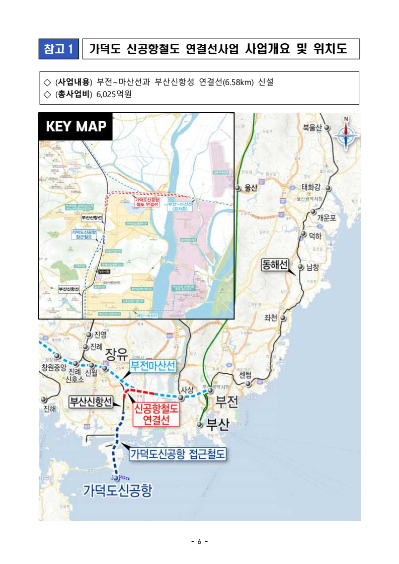 - 1 - 보도참고자료 가덕도 신공항철도 연결선, 서울5호선 김포‧검단연장 및 위례신사선 도시철도 ‘예타 통과’ 【관련 국정과제】 57. 교통혁신 인프라 확충 - 대도시권 교통 혼잡 완화 및 교통소외지역 해소 추진 □ 국토교통부(장관 김윤덕)는 3월 10일(화) 가덕도신공항 철도 연결선 사업과서울5호선 김포‧검단 연장, 위례신사선 건설사업이 사업 타당성을 확보하여 예비타당성조사(이하 ‘예타’)를 통과하여 본격 추진된다고 밝혔다. < 예타 통과 사업 내용 > 사업명 사업 내용 사업비 ① 가덕도 신공항철도 연결선 부전~마산선과 부산신항선 연결(6.58km) 6,025억원 ② 서울5호선 김포‧검단 연장 서울시 강서구 방화역~인천 검단 신도시~ 김포 김포한강2신도시 연결(25.8km) 3조 5,587억원 ③ 위례신사선 위례신도시~삼성역~신사역 연결(14.8km) 1조 9,367억원 □ 이번에 예비타당성조사를 통과한 사업별 주요 내용은 다음과 같다. < ① 가덕도 신공항철도 연결선 사업 > □ 가덕도 신공항철도 연결선 사업은 울산과 부산 도심에서 가덕도신공항까지 환승 없이 직접 연결하여 가덕도 신공항의 접근성을 높이는 핵심 철도망 연결 사업이다. ㅇ '21년 제4차 국가철도망구축계획('21~'30)에 반영된 이후, '24년 2월 예타에 착수(KDI)하였으며, 경제성 분석(B/C), 정책성 분석 등에 대한 종합 평가('26.3.9.)를 거쳐 금일 예타를 통과하게 되었다. 보도시점 : 배포 즉시 보도 가능 / 배포 : 2026. 3. 10.(화) - 2 - □ 본 사업은 건설 중인 부전~마산 복선전철과 운영 중인 부산신항선을 잇는 6.58km의 연결선(삼각선)을 신설하는 사업으로, 총사업비 6,025억 원이 투입될 예정이다. ㅇ 사업 시행 시 울산 태화강역부터 가덕도 신공항역까지 총 101.7km 구간을 ITX-마음 열차가 25분 간격으로 운행하게 된다. ㅇ 부산 도심(부전역)에서 신공항까지 26분, 울산 도심(태화강역)에서 신공항까지 92분 만에 주파하게 되어 부산‧울산 주민의 공항 접근성이 크게 개선된다. ㅇ 또한, 기존 삼랑진 방향으로 우회하던 화물 노선(부산신항↔울산신항)을 직결하여 수송 거리를 약 60km 단축한다. 이를 통해 기업의 물류 비용을 낮추는 동시에, 철도망이 신공항과 부산신항을 촘촘하게 엮어주면서 ‘동남권 Tri-Port’의 완성도를 높이게 될 것으로 기대된다. □ 국토교통부 김태병 철도국장은 “가덕도 신공항의 성공적 운영을 뒷받침하게 될 핵심 철도 교통망 구축의 출발점”이라며, ㅇ “연결선 사업을 신속히 추진하여 ‘5극 3특’ 기반의 국가균형발전을 선도하고 부‧울‧경 초광역 생활권 조성에 기여할 수 있도록 최선을 다하겠다” 라고 밝혔다. < ② 서울5호선 김포‧검단 연장 > □ 서울5호선 김포‧검단 연장 사업은 서울 방화역(5호선)에서 인천 검단신도시를 거쳐 김포한강2 콤팩트시티 지구까지 약 25.8km 구간(정거장 10개소)을 연결하는 광역철도 사업이다. ㅇ '24년 제4차 대도시권 광역교통 시행계획('21~'25)에 수정반영된 이후, '24년 9월 예타에 착수(KDI)하였으며, 경제성 분석(B/C), 정책성 분석등에 대한 종합 평가('26.3.5.)를 거쳐 금일 예타를 통과하게 되었다. - 3 - □ 본 사업은 서부권-서울 연결 인프라를 구축하기 위한 대통령 지역공약사항이며, 특히 극심한 혼잡을 보이고 있는 김포골드라인*의 교통수요를 분산하여 국민의 교통 안전을 확보하는 핵심 사업이다. * ’26.2.27 국무총리 방문 및 현장점검 시 혼잡 완화 위한 5호선 연장 추진 필요성 강조⤷ ’26.1월 기준 최대 혼잡도가 180% 수준으로 여전히 혼잡한 수준 ㅇ 그간 국토부는 지자체 간 노선 이견에 대한 중재안 마련('24.1), 예타통과를 위한 경제성 향상방안 마련 등 적극적인 역할을 해왔으며, 이번 예타 통과를 통해 그 결실을 맺게 되었다. ㅇ 5호선 연장사업이 준공되면 김포한강2신도시~방화역은 기존 대비 약 31분(57→26분), 김포한강2신도시~서울역도 약 31분(87→56분)의 이동 시간 단축이 기대되며, 김포골드라인의 혼잡도는 160% 이하로 완화될 것으로 예측되어 국민의 안전하게 출근할 권리를 두텁게 보장할 수 있을 전망이다. ㅇ 아울러, 이번에 예타를 통과함에 따라 경기도에서는 금년 내 기본계획 용역 착수를 계획하고 있으며, 나머지 설계, 착공 등 후속 절차도 신속하게 추진할 예정이다. < ③ 위례신사선 > □ 위례신사선은 위례신도시를 시점으로 삼성역(강남권 중심업무지구)를 거쳐신사역(서울3호선)까지 연결하는 14.8km 규모의 도시철도(경전철) 사업으로, ㅇ '15년 서울시 도시철도망 구축계획에 반영된 민자사업으로 추진하던 중여건악화에 따라 재정사업으로 변경되었으며, '25년 5월 예타에 착수(KDI)하여 경제성 분석(B/C) 및 정책성 분석 등에 대한 종합 평가('26.3.6.)를 거쳐 금일 예타를 통과하게 되었다. □ 동 사업은 위례신도시 대중교통 편의성을 확보하고 교통혼잡을 완화하기위한 근본대책으로 대통령 지역 공약사항과 위례신도시 광역교통개선대책에 포함되어 있다. - 4 - ㅇ 위례신도시 주민들의 오랜 숙원사업인 동 사업 시행 시 위례신도시와 서울 강남권(삼성역, 신사역 등)이 연결되어, 위례중앙역부터 삼성역까지는약 34분(48→14분), 신사역까지는 약 32분(56→24분)의 이동 시간 단축이 기