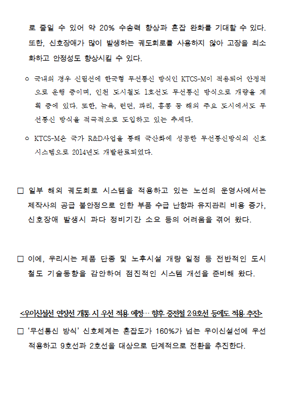 - ‘궤도회로 방식’→ ‘무선통신 방식’, 올해 우이신설선 시작으로 9호선‧2호선 순차 적용