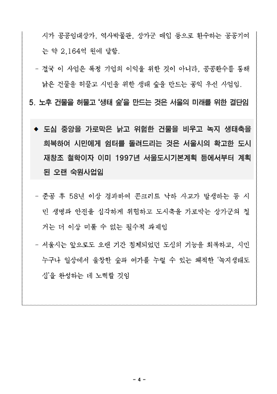 - 서울시는 앞으로도 오랜 기간 침체되었던 도심의 기능을 회복하고, 시민