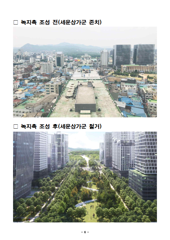 - 세운상가군 철거 후 조성될 도심 녹지축은 광화문광장의 3배, 덕수궁 면