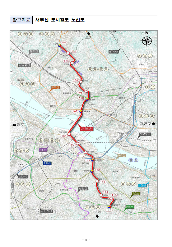 참고자료 서부선 도시철도 노선도