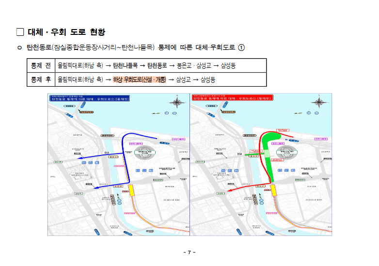 ㅇ 탄천동로(잠실종합운동장사거리~탄천나들목) 통제에 따른 대체·우회도로 ②