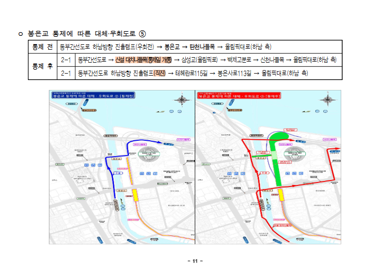 ㅇ 봉은교 통제에 따른 대체·우회도로 ⑤