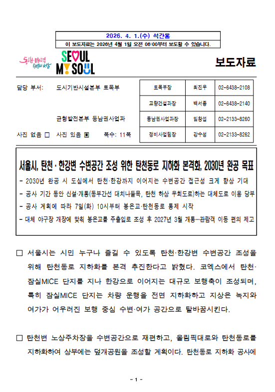 담당 부서: 도시기반시설본부 토목부 토목부장 최진우 02-6438-2108