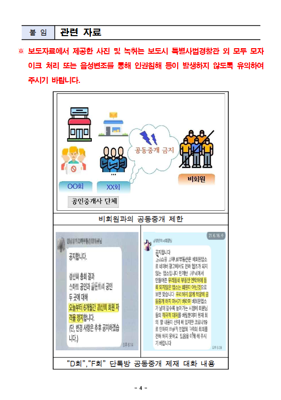 ※ 보도자료에서 제공한 사진 및 녹취는 보도시 특별사법경찰관 외 모두 모자