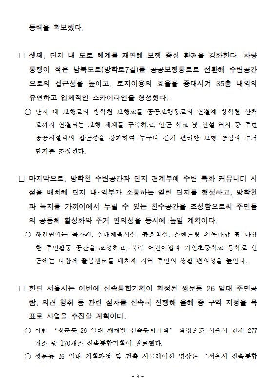 □ 한편 서울시는 이번에 신속통합기획이 확정된 쌍문동 26 일대 주민공
