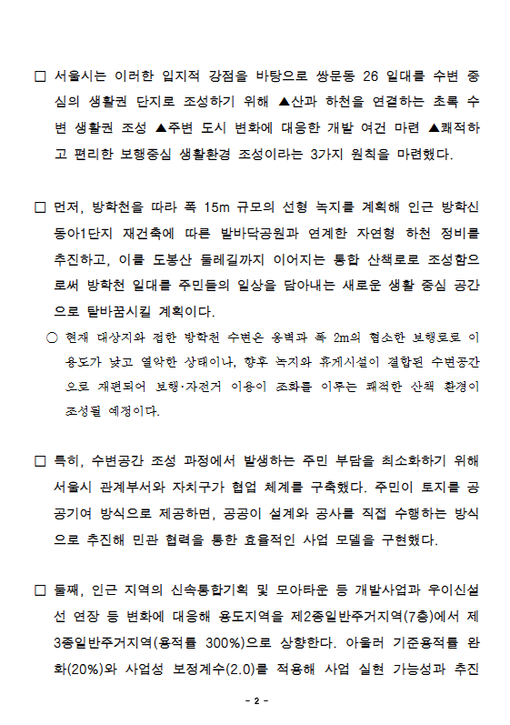 □ 안대희 서울시 도시공간본부장은 “쌍문동 26 일대가 방학천과 주거공