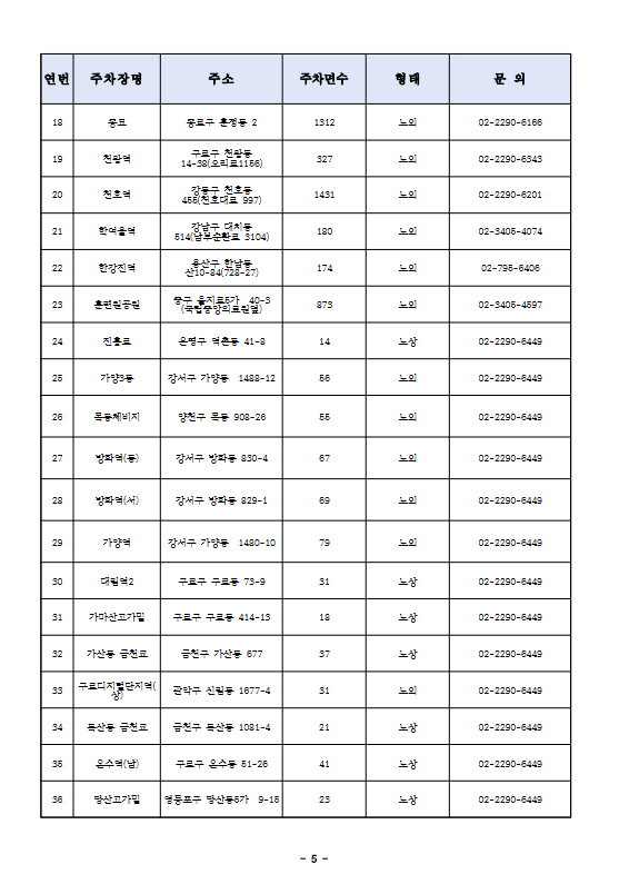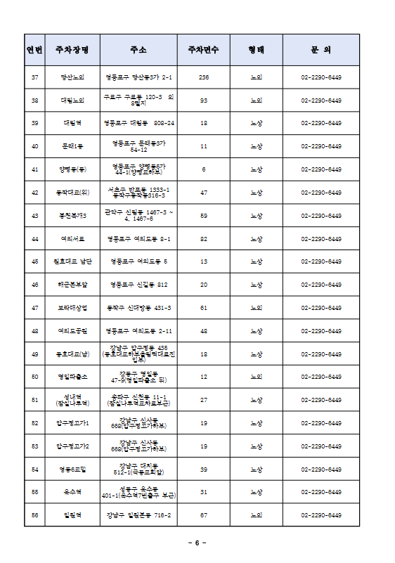 연번 주차장명 주소 주차면수 형태 문 의