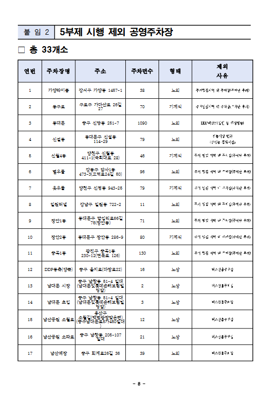 붙임 2. 5부제 시행 제외 공영주차장